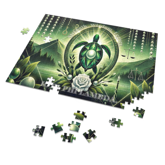 Emerald Turtle Puzzle: Piece Together Strength & Wisdom Jigsaw Puzzle with Tin