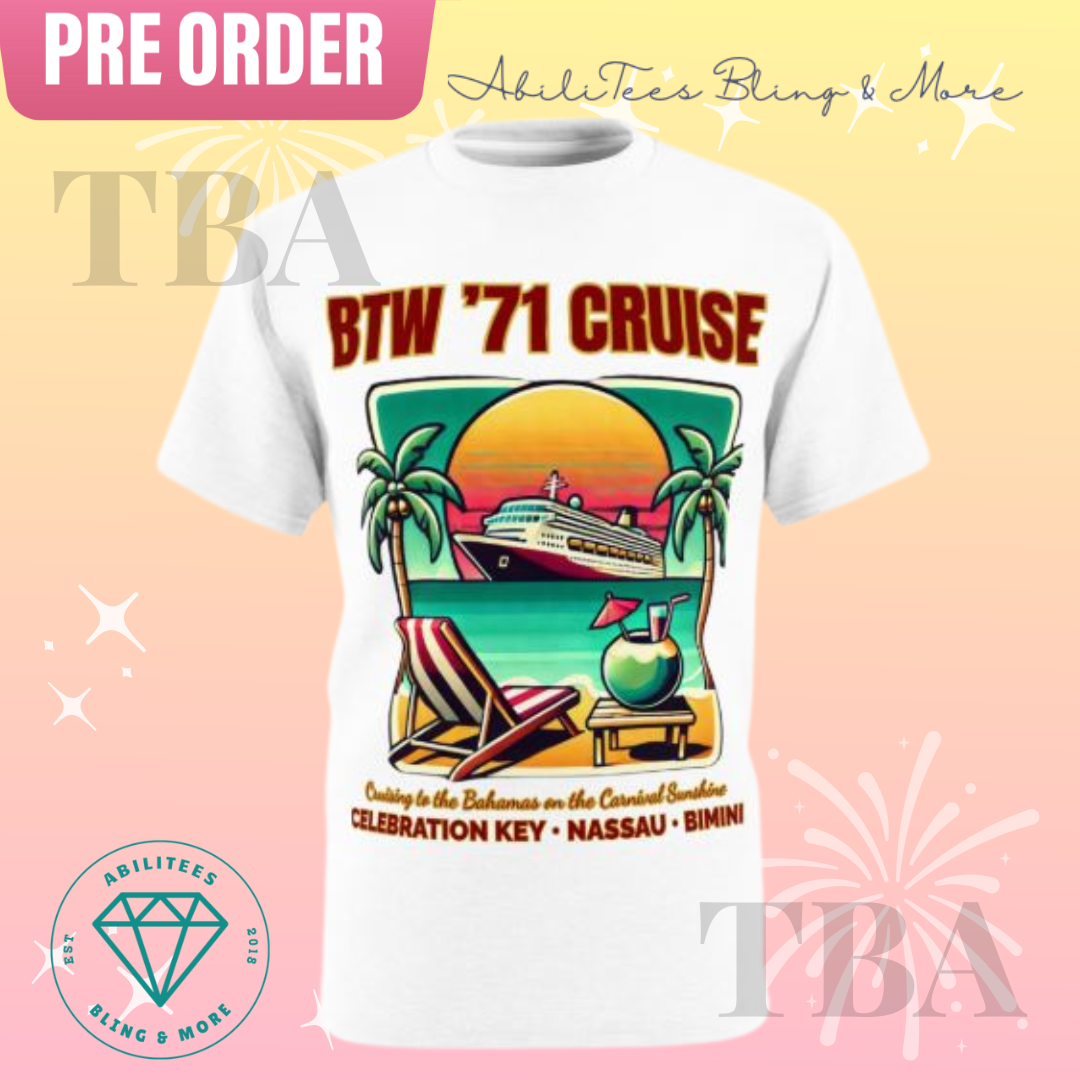 Celebrate the BTW ’71 Cruise from Sept 28 – Oct 4, 2025 with your exclusive shirt! Cruise stops include Celebration Key, Nassau, and Bimini — perfect for a week of sunshine, sea breezes, and unforgettable memories. 🌊🏝 Preorder now! 🚢